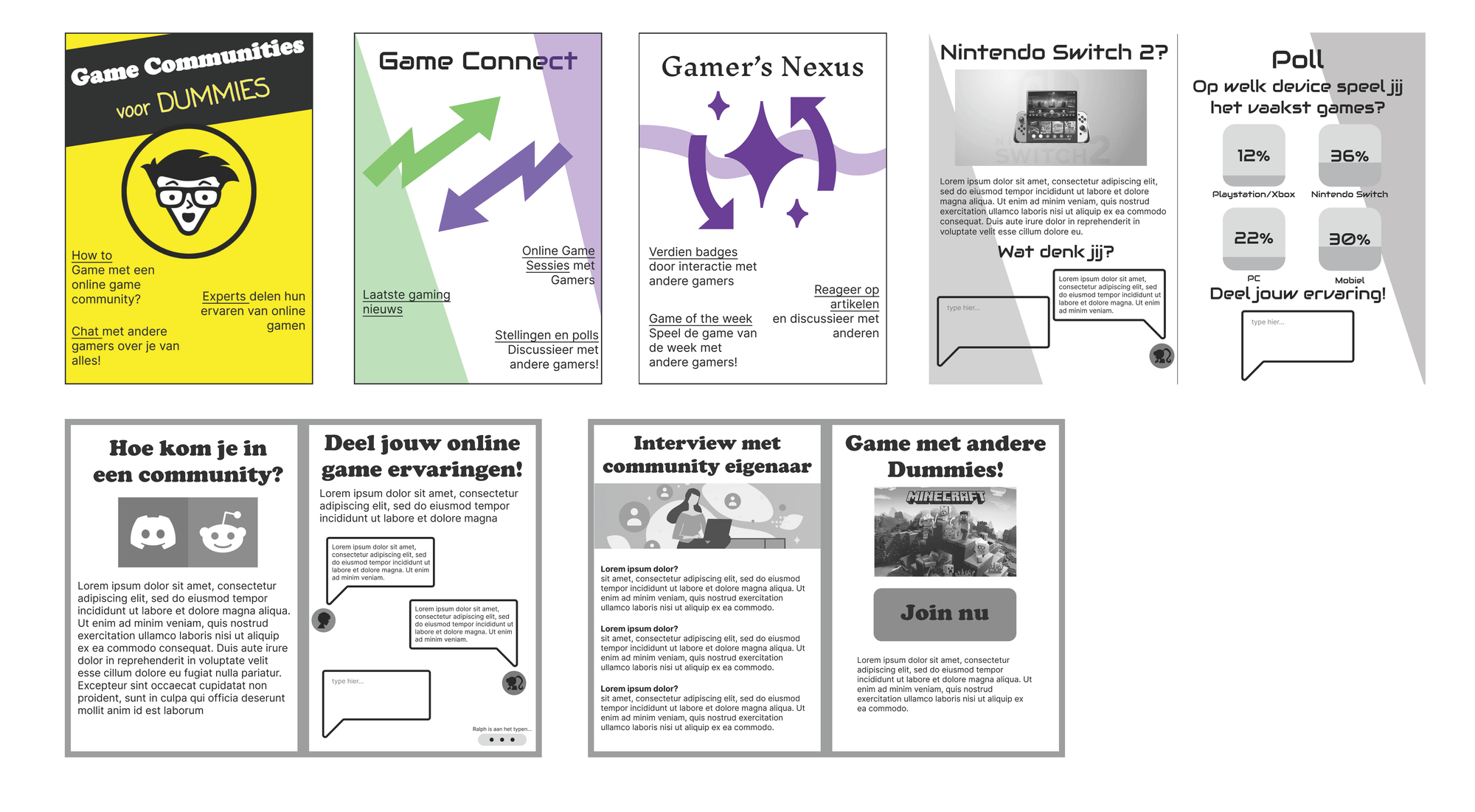 In een project waar autonomie en profilering centraal stond, heb ik mij gericht op mijn passie voor storytelling & gaming. Zonder opdrachtgever en richting, heb ik gekozen voor iets wat dichtbij mij stond als ontwerper. Ik richtte mij op de doelgroep jongvolwassen gamers en analyseerde de problemen waar zij mee zaten. Door gaming in te zetten wilde ik zowel hen verbinden als hen laten genieten van gaming.