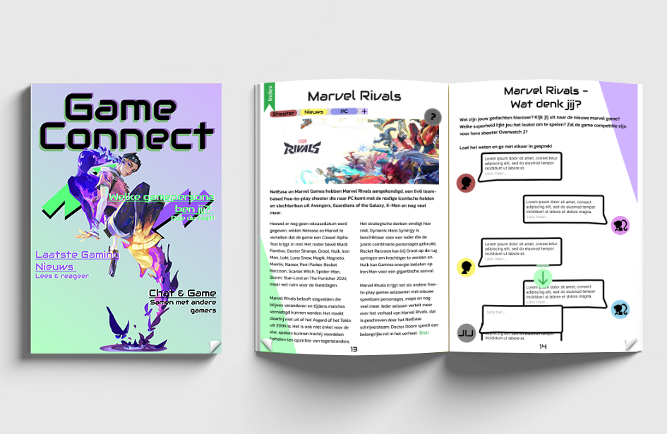 Uiteindelijk ben ik tot het eindconcept gekomen van een digitaal online interactief magazine genaamd Game Connect. Dit magazine is voor jongvolwassen gamers waarin zij onder andere het laatste game nieuws kunnen lezen, kunnen chatten met andere gamers en mee kunnen doen aan wekelijkse game sessies.