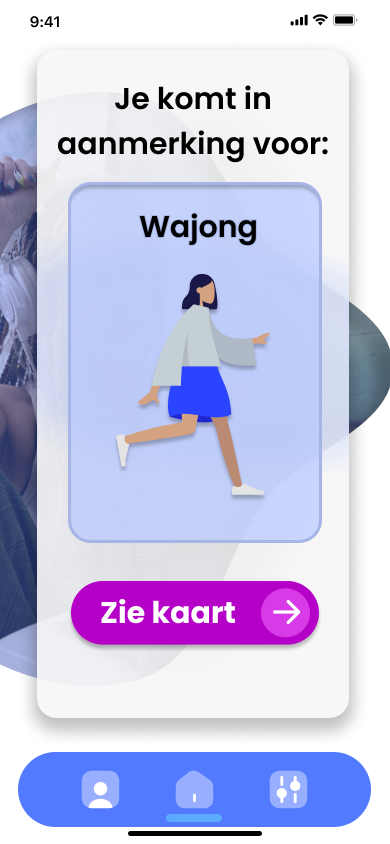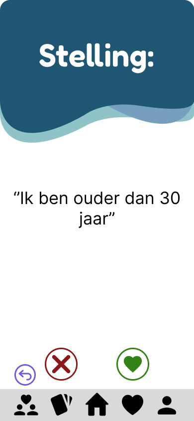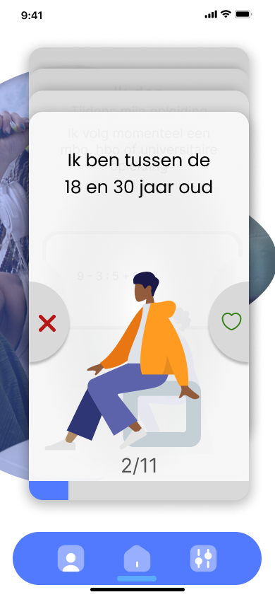 Uiteindelijk hebben we ervoor gekozen om een app te maken. We hebben hiervoor gekozen omdat een app zeer toegankelijk is voor de meeste mensen. We werden geïnspireerd door hoe onder andere ‘Tinder’ het vinden van een match wordt versimpeld. Wij wilden daarom ook zelf door middel van een match systeem het zoeken naar toeslagen versimpelen en gamificeren. Hieronder zie je visueel het proces wat ik doorgegaan ben tijdens het ontwerpen van de digitale interfaces.